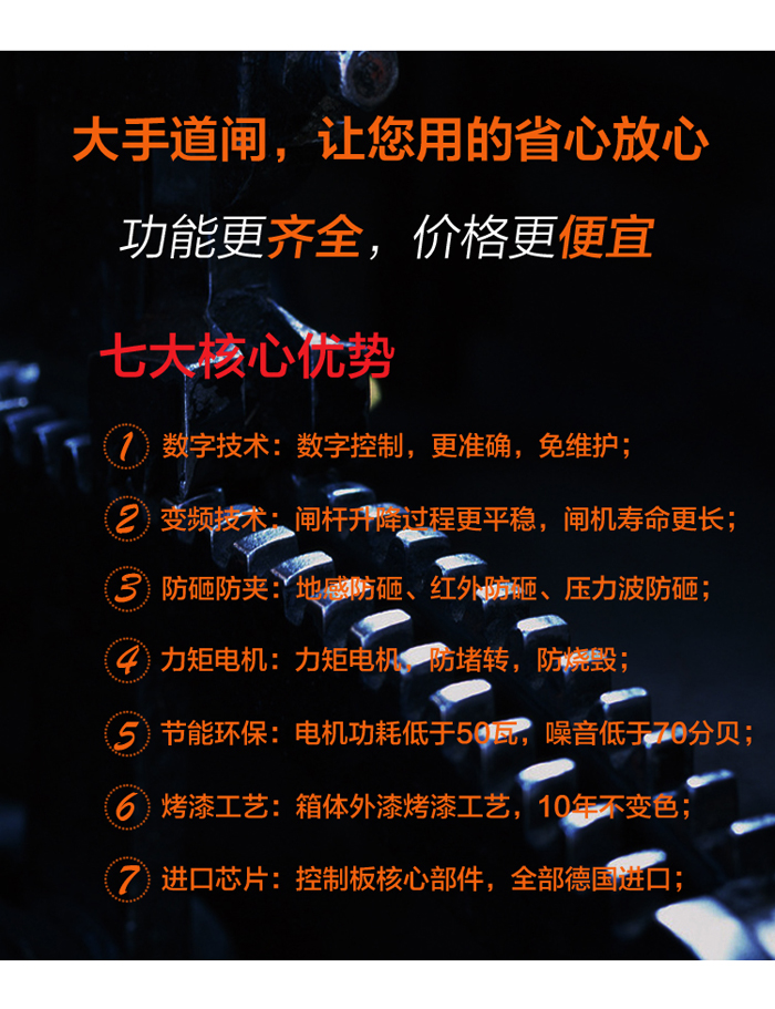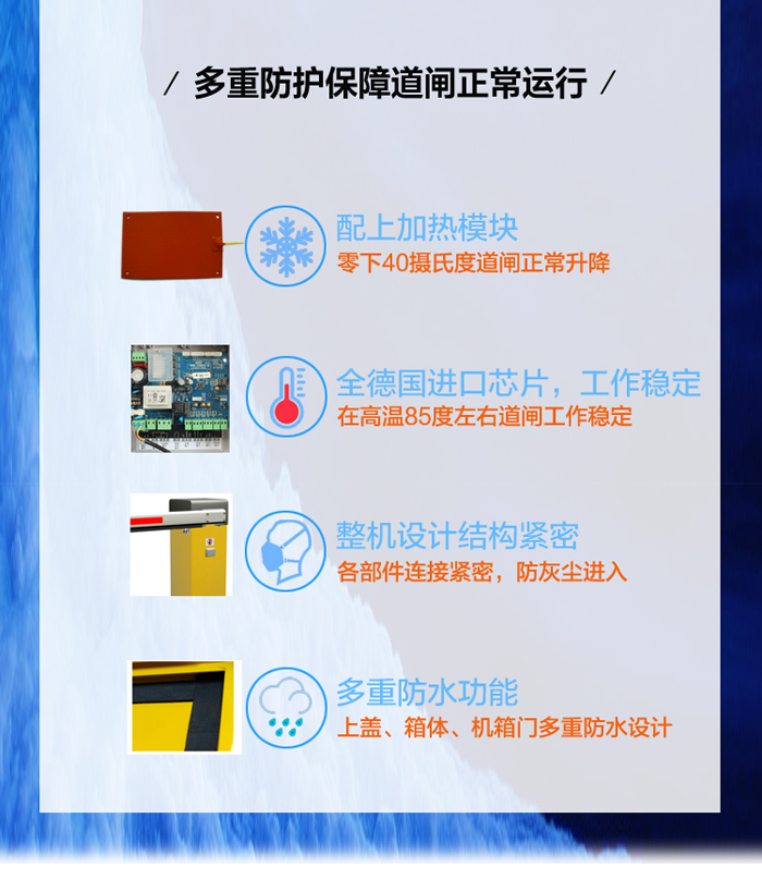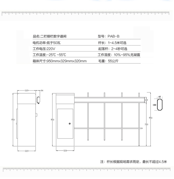 二欄柵欄數(shù)字道閘-B型,在直桿道閘的基礎(chǔ)上再加上一根橫欄,整體由道閘箱體和二欄柵欄組成。桿長最多4.5米,閘機(jī)升降速度在1秒、1.5秒、2秒、3秒、4秒之間可選。二欄柵欄同時(shí)具備兩大優(yōu)勢:1、外形美觀大方;2、防止人員直接從閘桿下方鉆進(jìn)鉆出。富有人性化設(shè)計(jì)的二欄柵欄數(shù)字道閘,可以有效防止閘桿抖動(dòng),避免意外事件發(fā)生。道閘與大手各類停車系統(tǒng)都能完美匹配,是停車管理系統(tǒng)的得力助手。