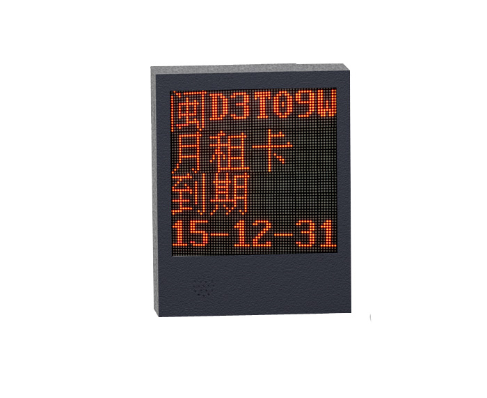 戶外四行LED顯示屏,既可作為入口顯示屏,顯示歡迎詞、空余車位、車牌號碼、車輛類型,進場入口及時間等信息,也可作為出口顯示屏,顯示收費金額、車牌號碼、車輛類型、進場入口、進場時間及停車時間等內(nèi)容。內(nèi)置的語音提示可按照設定的語音進行提示(如:歡迎光臨、請繳費xxx元、一路平安等),聲音也可根據(jù)需要進行調(diào)整。